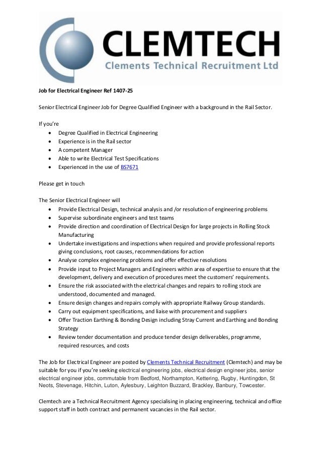 Job For Electrical Engineer Ref 1407 25