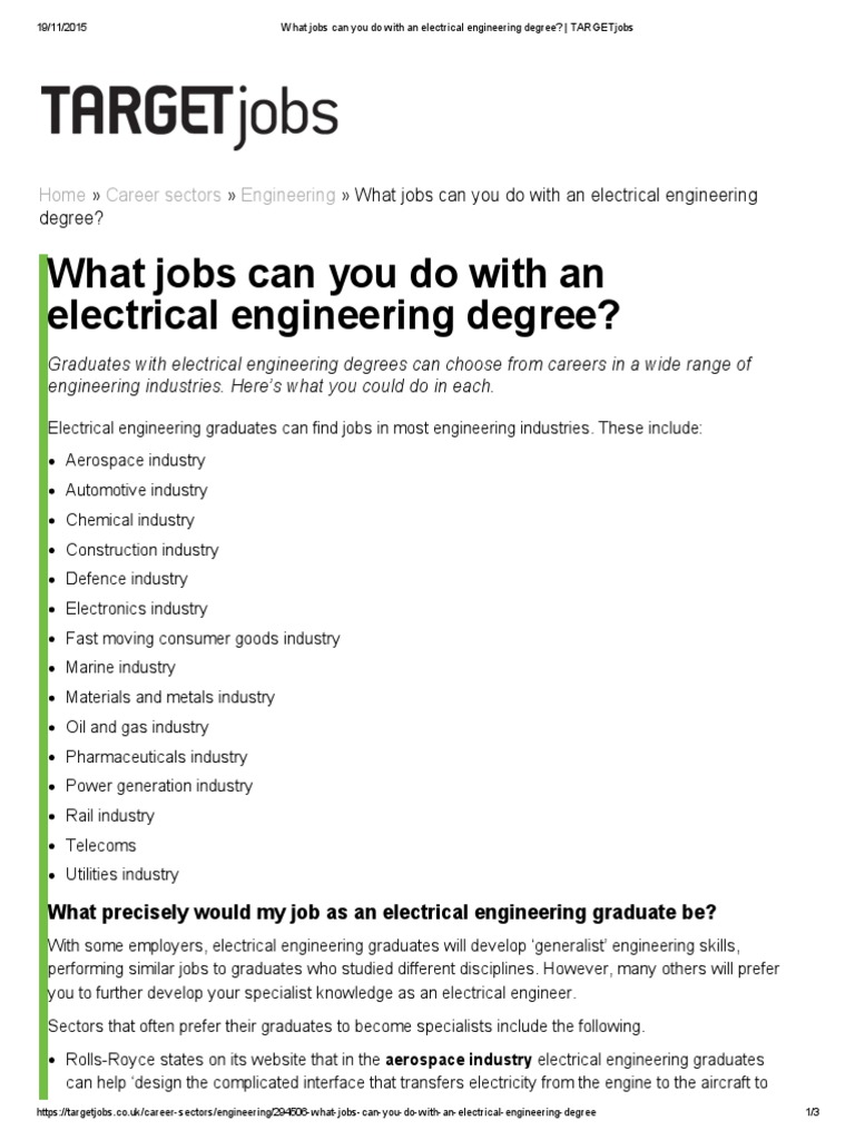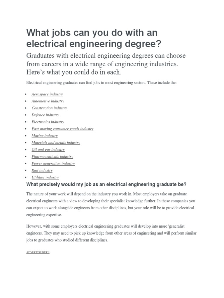 What Jobs Can You Do With An Electrical Engineering Degree Electrical Engineering Academic Degree