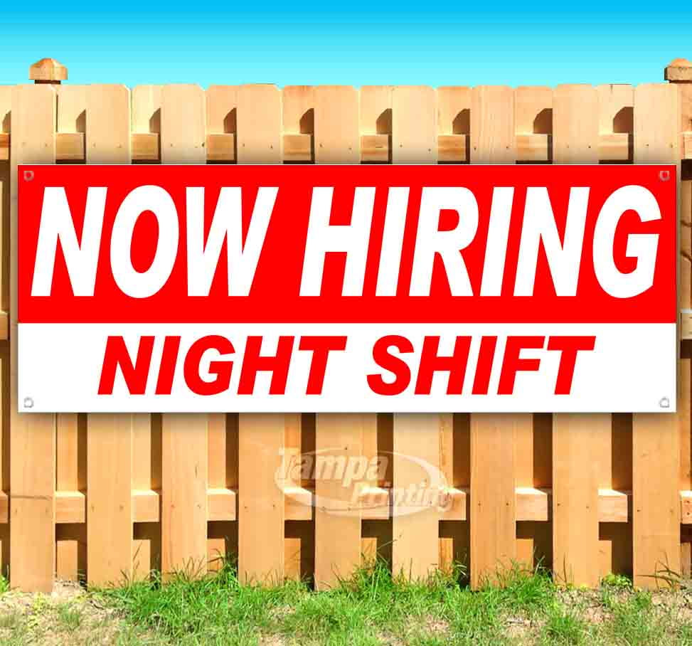 Now Hiring Night Shift 13 Oz Heavy Duty Vinyl Banner Sign With Metal Grommets New Store Advertising Flag Many Sizes Available Walmart Com Walmart Com