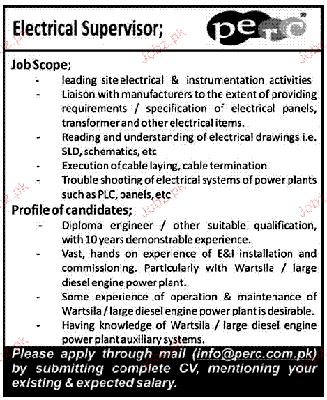 Electrical Supervisor Job Opportunity 2021 Job Advertisement Pakistan