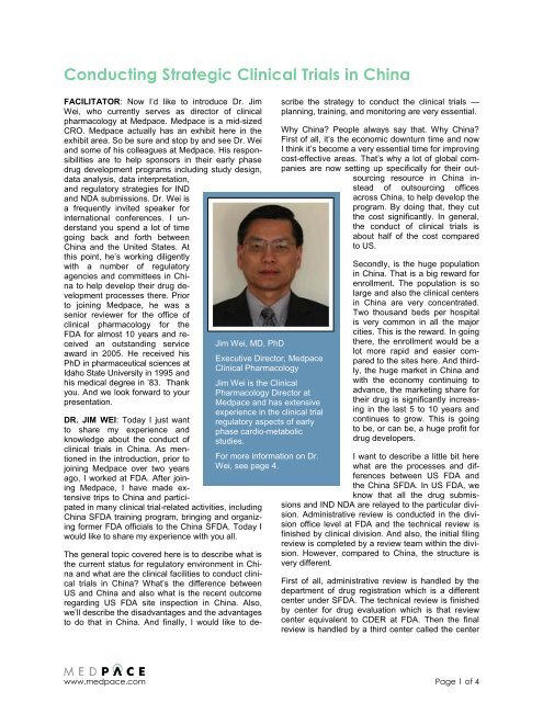 Conducting Strategic Clinical Trials In China Transcription Medpace