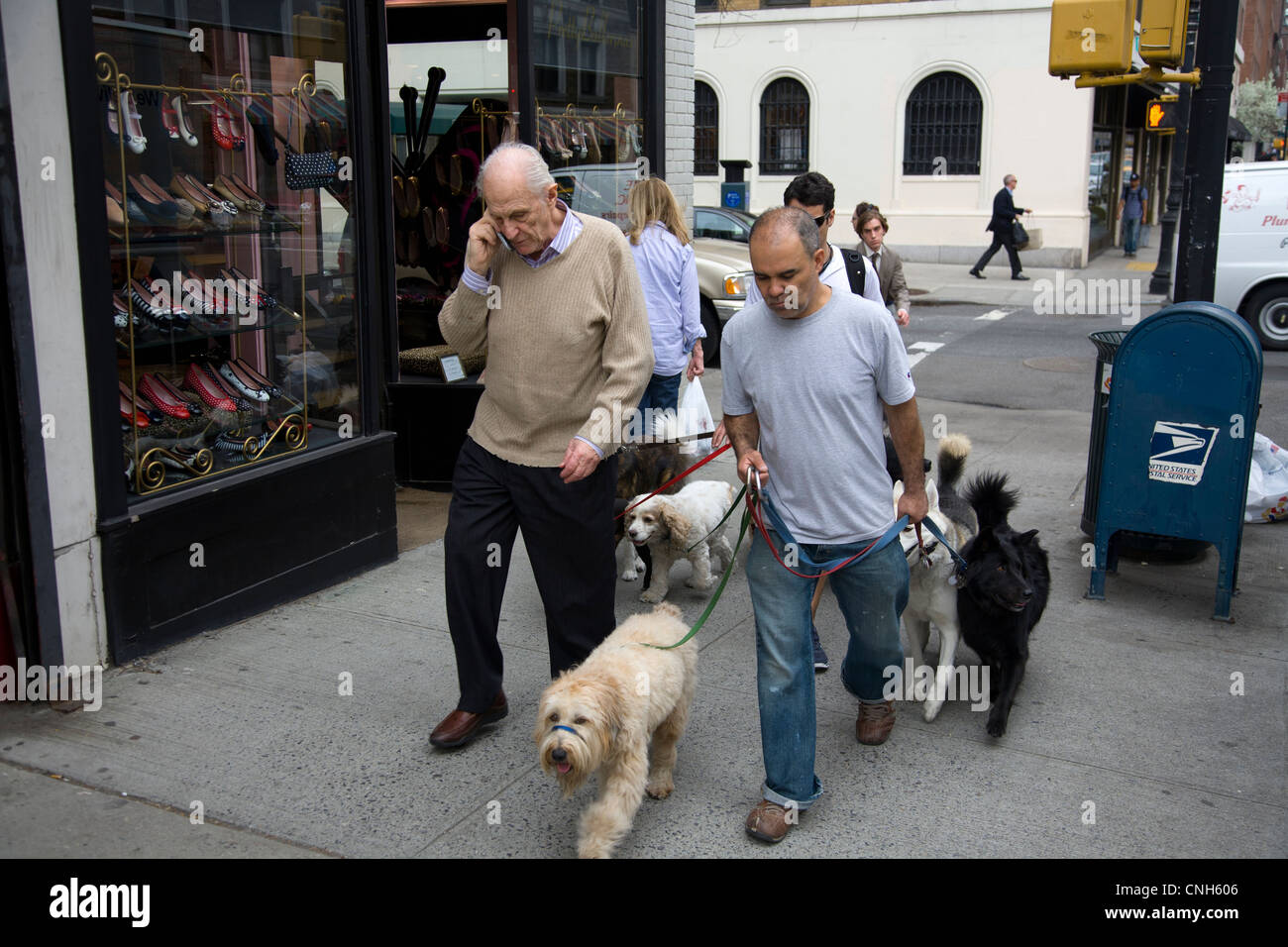 Dog Walker Along Lexington Avenue On The Upper East Side Of Stock Photo Alamy